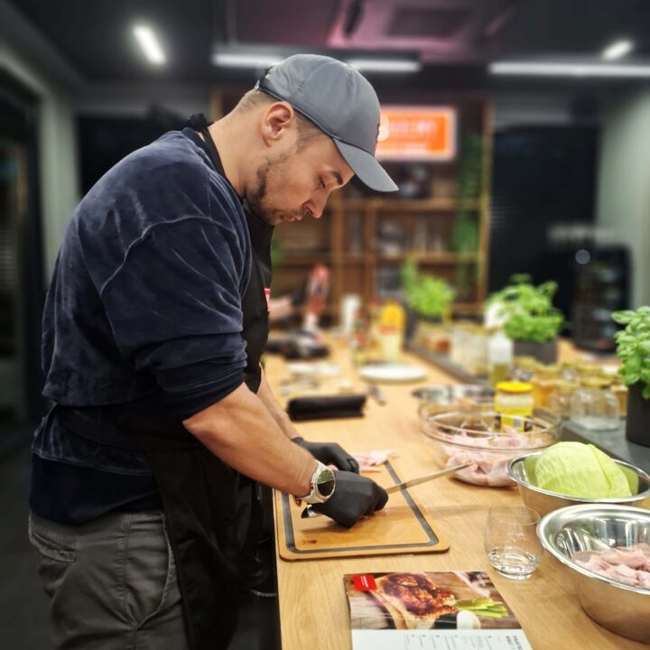 Dawid przez lata pracował w renomowanych warszawskich hotelach, doskonaląc swoje umiejętności w kuchniach o najwyższych standardach. Dzięki temu dziś łączy elegancję fine dining z pasją do ognia i grilla, tworząc warsztaty na światowym poziomie.