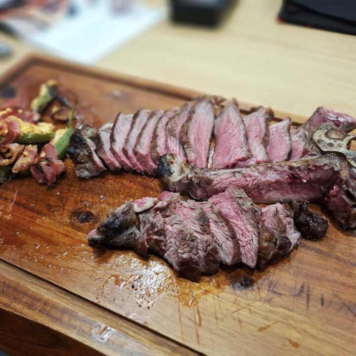 - Dania główne: Żeberka pieczone w stosie, stek z kością