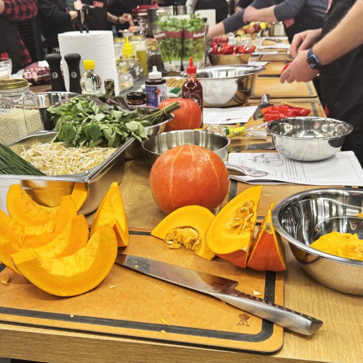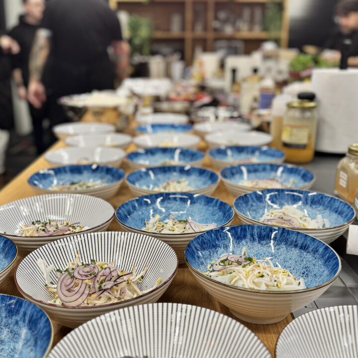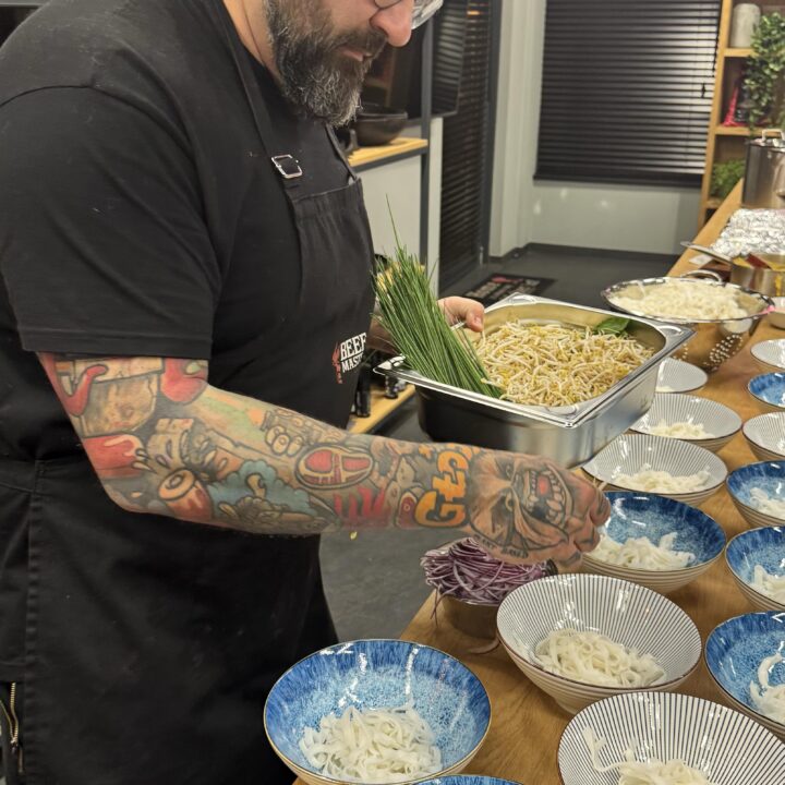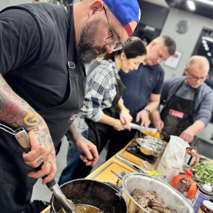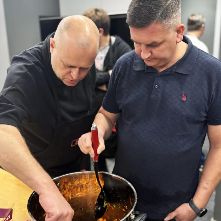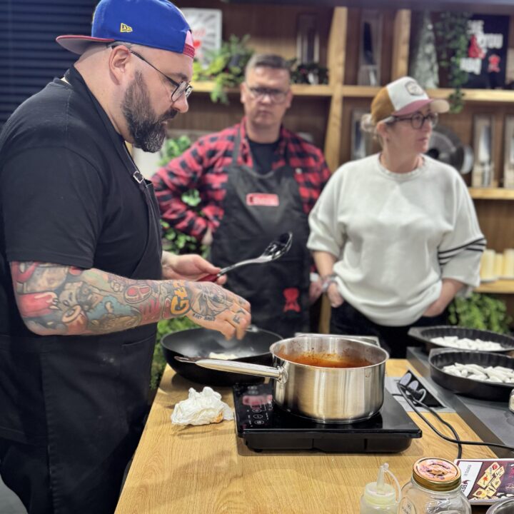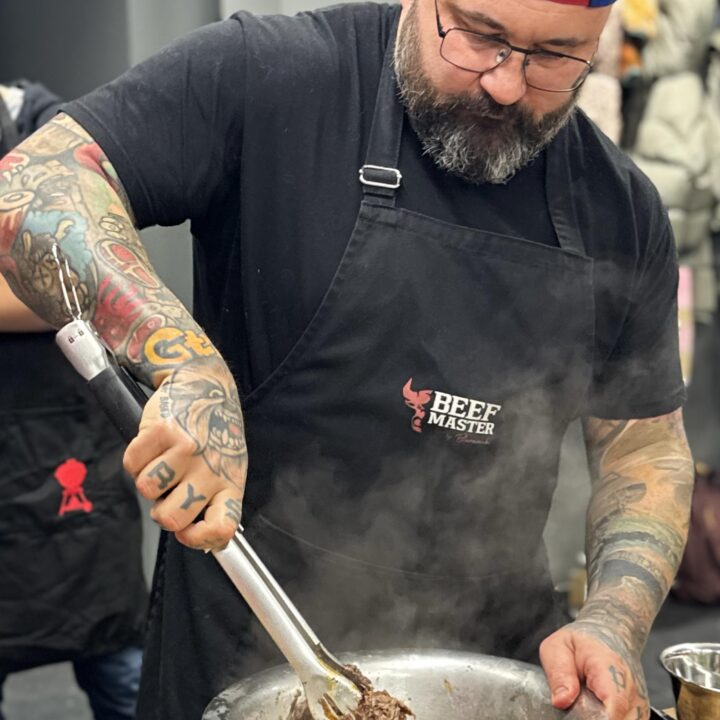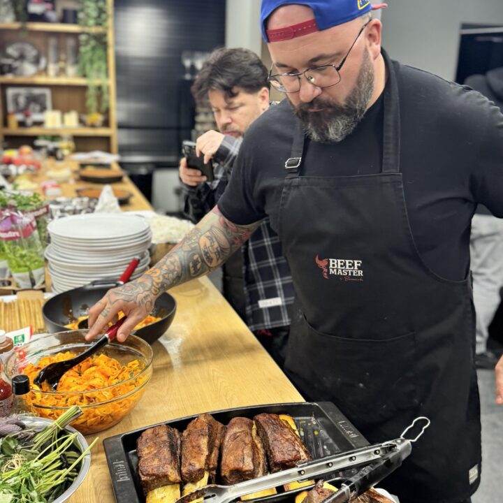 Podczas warsztatów odkryjesz cztery oblicza ognia – od wędzenia i grillowania po finezyjne łączenie mięsnych aromatów z egzotycznymi dodatkami. Zaczniesz od papryk Ramiro nadziewanych pulled beef, owijanych w chrupiący boczek i otulonych kremowym sosem serowym. Następnie przeniesiesz się do Hanoi – rozgrzewające Pho Bo z grillowaną wołowiną, makaronem ryżowym i świeżymi ziołami pokaże Ci, jak połączyć głębię bulionu z charakterem ognia. Później królową rusztu staną się short ribs z koreańskim twistem – podane z Tteokbokki i piklami z dyni. A na finał – crumble zimowe z grilla z kruszonką z ciastek Lotus i domowymi lodami śmietankowymi. Dym, żar i mięso w najlepszym towarzystwie – powered by Beef Master.