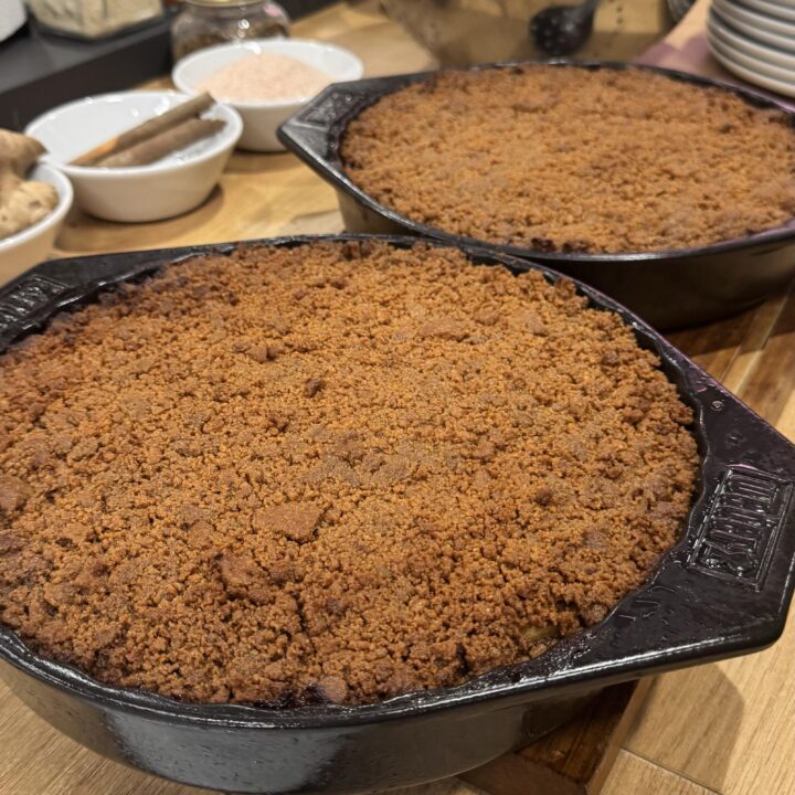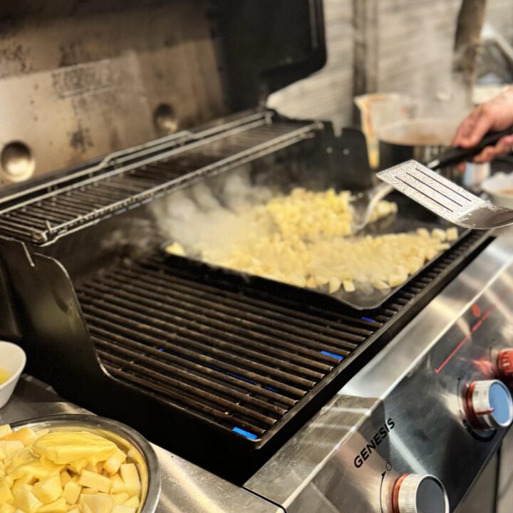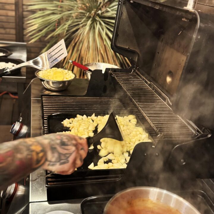 - Crumble zimowe z grilla – Słodkie zwieńczenie wieczoru – grillowane owoce przykryte kruszonką z ciastek Lotus, podane z gałką domowych lodów śmietankowych. Połączenie ciepła, chrupkości i kremowej delikatności, które zamknie wieczór w nutach słodyczy i nostalgii.