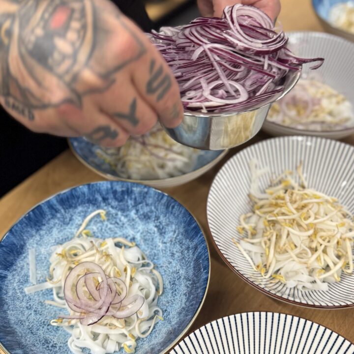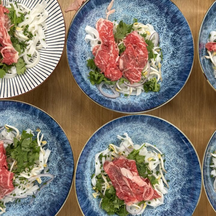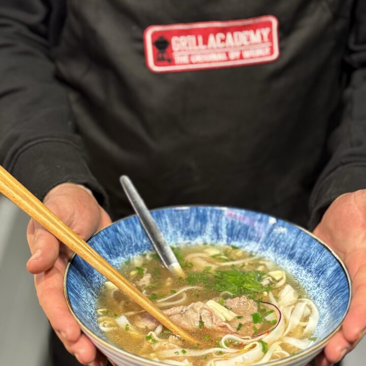 - Rozgrzewające Pho Bo Hanoi – Kulinarna podróż do Wietnamu prosto z grilla. Na ruszcie ląduje delikatna, grillowana wołowina, która trafia do głębokiego bulionu o bogatym, przyprawowym profilu. Towarzyszą jej makaron ryżowy, świeże zioła i odrobina limonki – wszystko razem tworzy rozgrzewający, aromatyczny balans, który koi i pobudza jednocześnie.