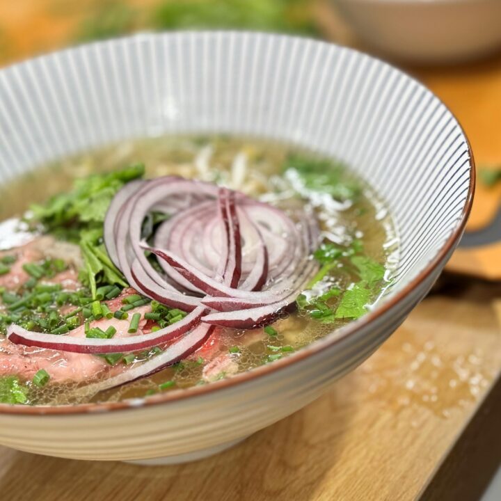 - Jak stworzyć domowy bulion Pho Bo Hanoi z grillowaną wołowiną i orientalnymi przyprawami.