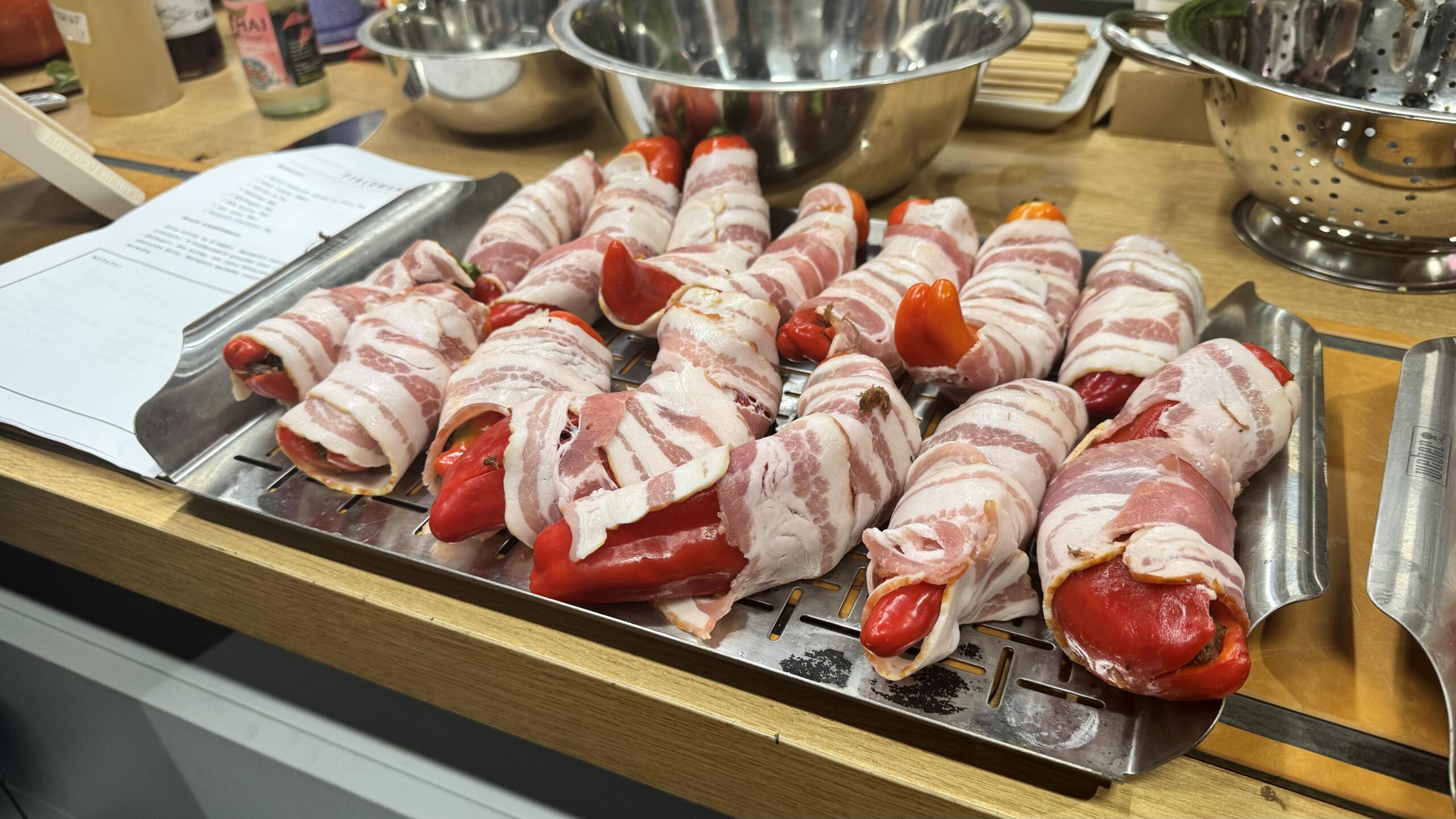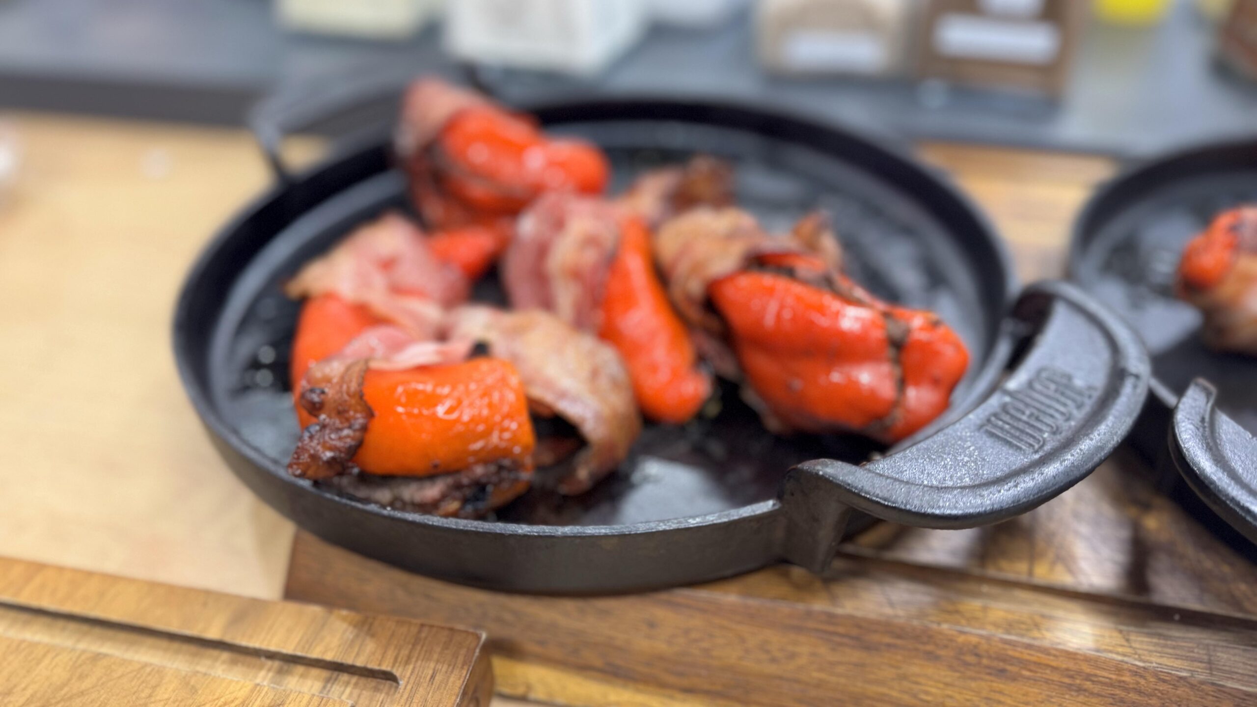 - Wędzone i grillowane papryki Ramiro – Mięsny klasyk w nowej odsłonie. Soczyste papryki Ramiro nadziewane wołowiną o głębokim, dymnym aromacie. Całość owinięta cienkimi plastrami chrupiącego boczku i wykończona gęstym, kremowym sosem serowym, który otula każdy kęs aksamitną intensywnością.