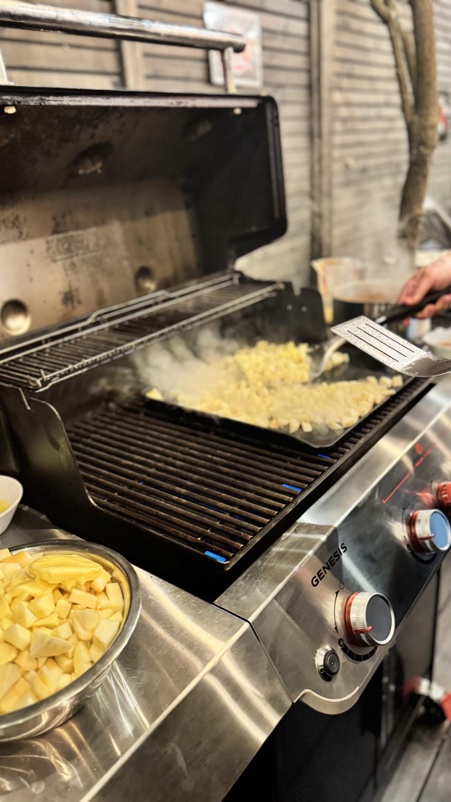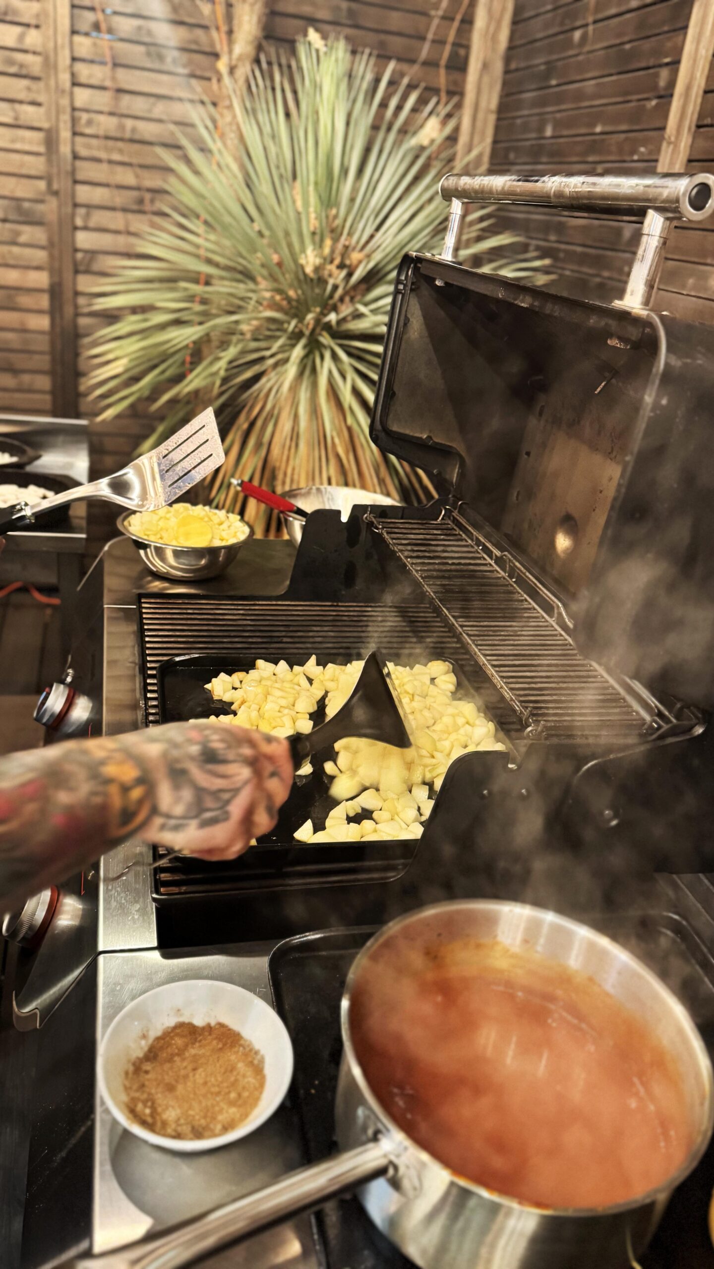 - Crumble zimowe z grilla – Słodkie zwieńczenie wieczoru – grillowane owoce przykryte kruszonką z ciastek Lotus, podane z gałką domowych lodów śmietankowych. Połączenie ciepła, chrupkości i kremowej delikatności, które zamknie wieczór w nutach słodyczy i nostalgii.