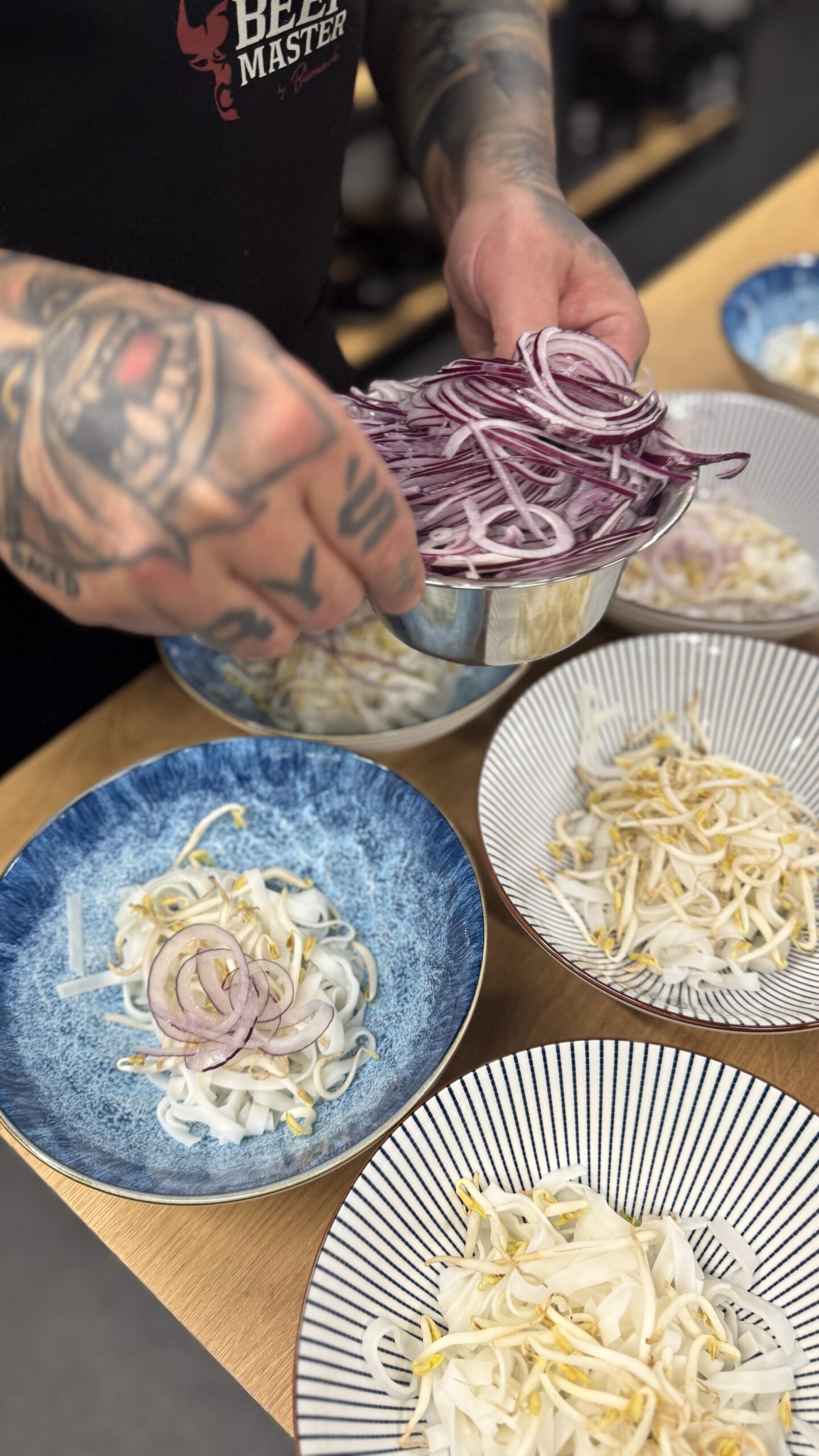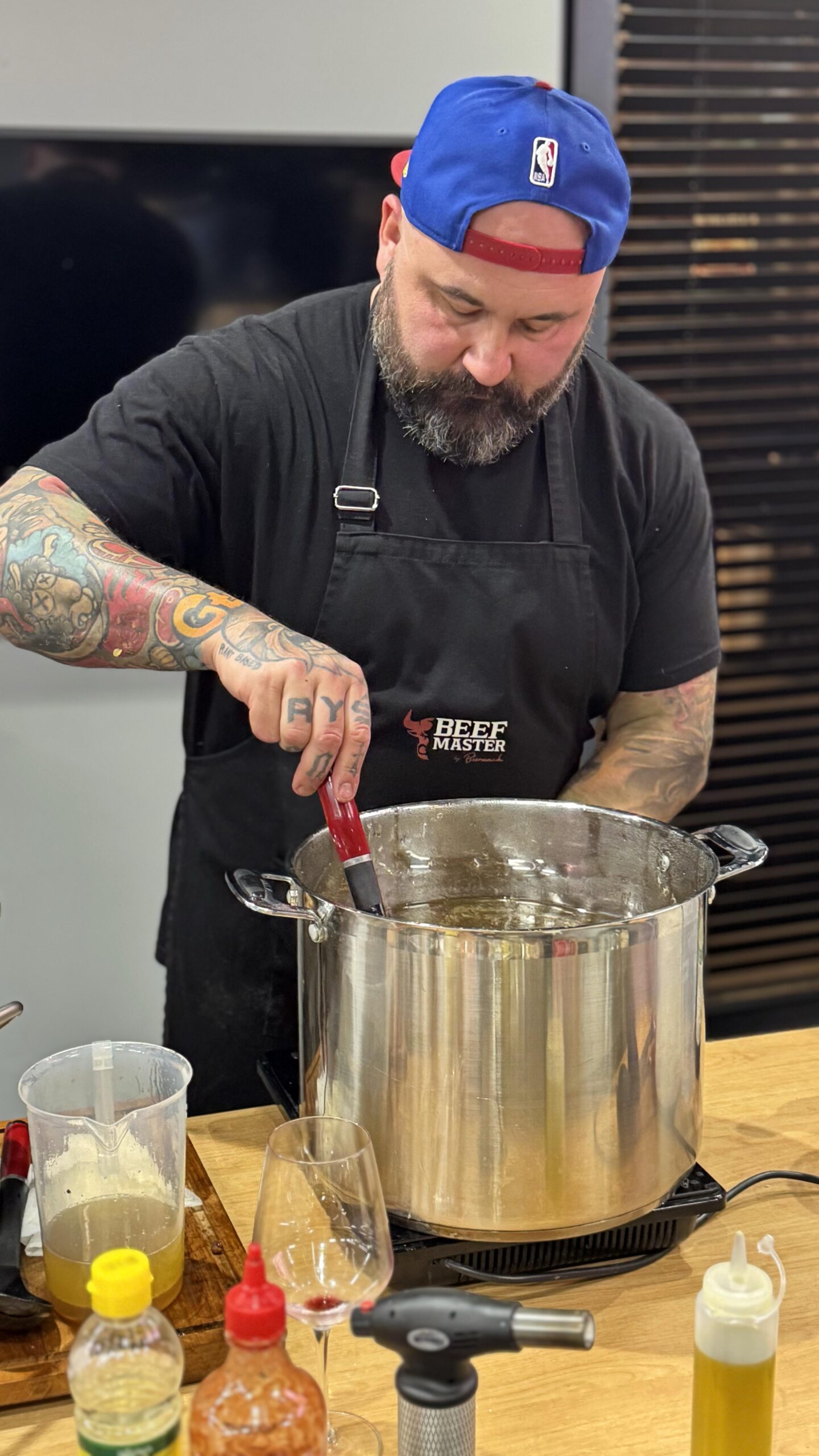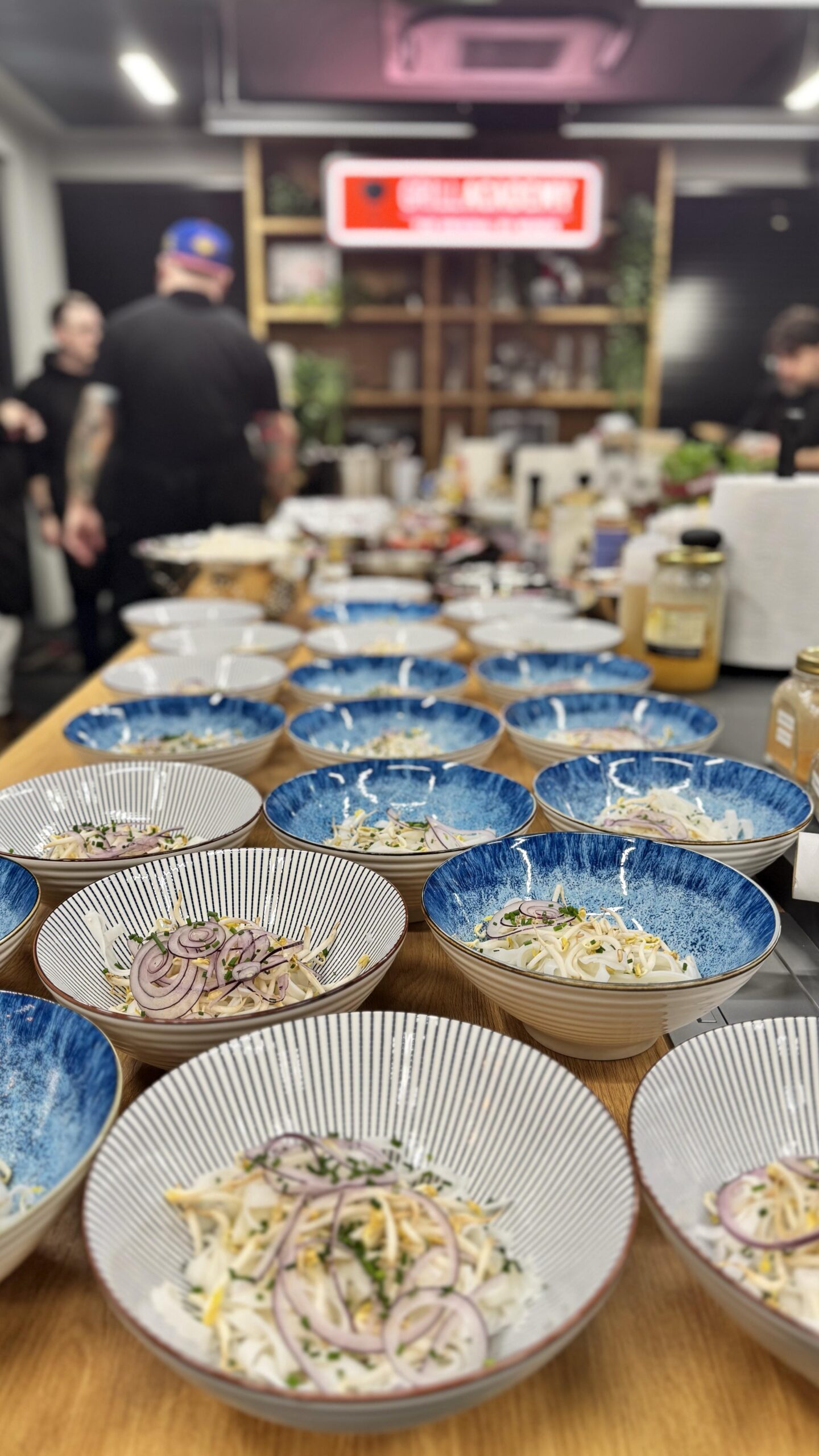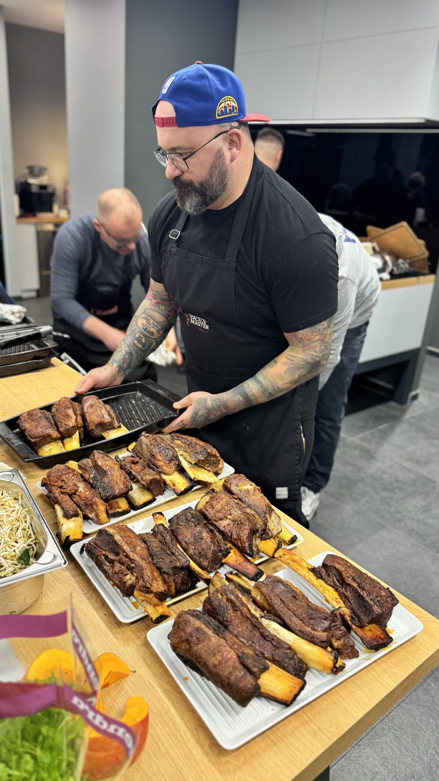 Podczas warsztatów odkryjesz cztery oblicza ognia – od wędzenia i grillowania po finezyjne łączenie mięsnych aromatów z egzotycznymi dodatkami. Zaczniesz od papryk Ramiro nadziewanych pulled beef, owijanych w chrupiący boczek i otulonych kremowym sosem serowym. Następnie przeniesiesz się do Hanoi – rozgrzewające Pho Bo z grillowaną wołowiną, makaronem ryżowym i świeżymi ziołami pokaże Ci, jak połączyć głębię bulionu z charakterem ognia. Później królową rusztu staną się short ribs z koreańskim twistem – podane z Tteokbokki i piklami z dyni. A na finał – crumble zimowe z grilla z kruszonką z ciastek Lotus i domowymi lodami śmietankowymi. Dym, żar i mięso w najlepszym towarzystwie – powered by Beef Master.
