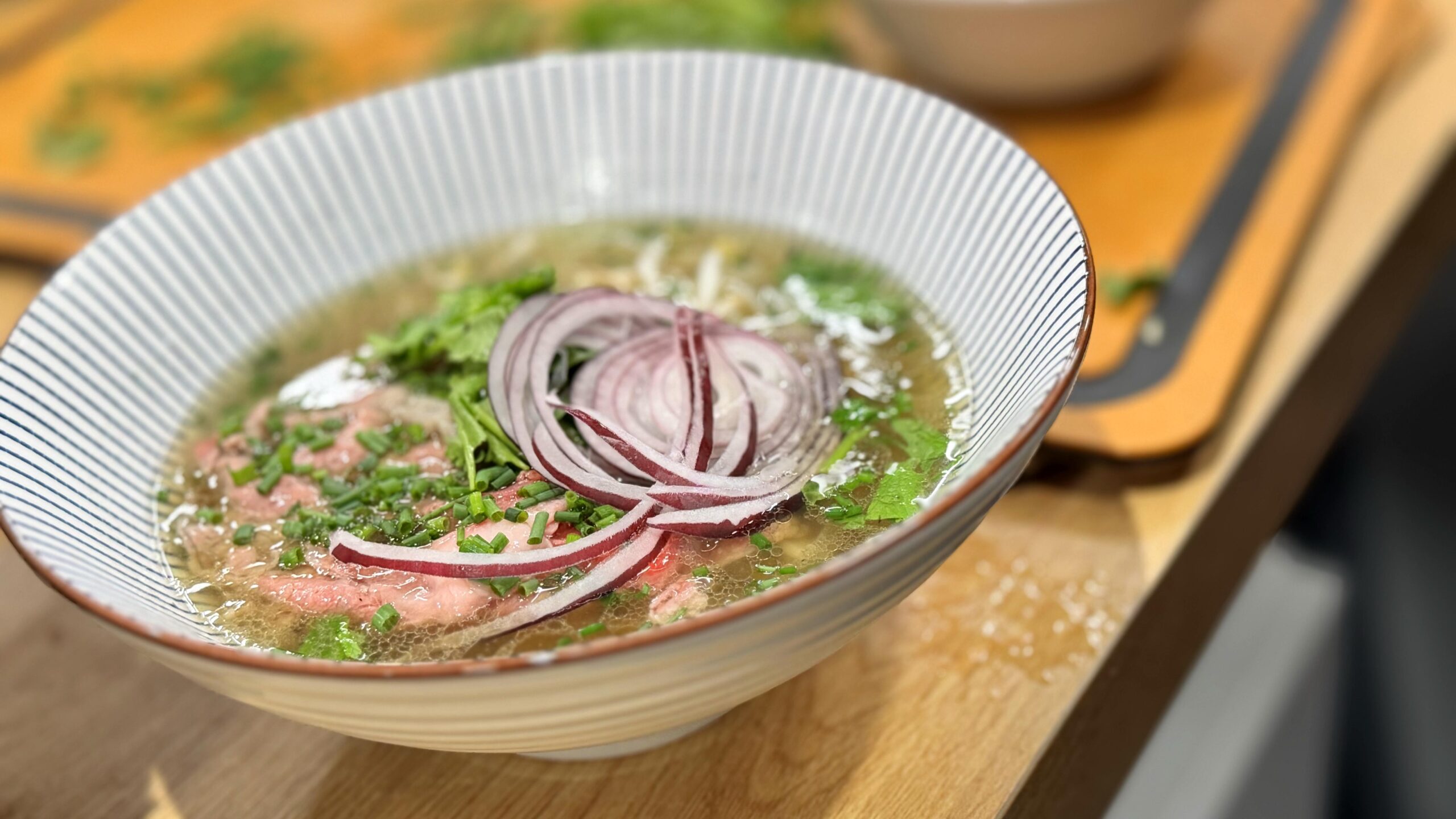 - Jak stworzyć domowy bulion Pho Bo Hanoi z grillowaną wołowiną i orientalnymi przyprawami.